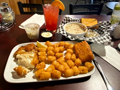 We were in Long Beach looking for a dive bar to have some beer and lunch at. We wandered into the Long Beach Tavern, it was perfectly divey and had a somewhat typical bar menu and atmosphere. We overheard the waitress recommending the daily special fish and chips to the couple next to us and thought wed order some too. It was without question, the best basket of fish and chips I have ever eaten. My mouth is watering thinking about them.