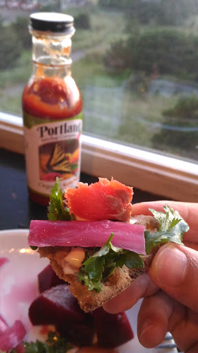 Although the menu resembles a high-end bistro, the food definitely does not match the menu. Looks to be a nice pizza and burger joint, however we went for a birthday celebration dinner (based on the menu) and were extremely disappointed. Server asked us what temperature to cook the salmon, so I assumed they could get both that and my steak properly cooked (medium rare). Steak came out seared but raw and cool, salmon was seared but uncooked inside as if from frozen. Salmon portion was one inch wide by three inches long, served with half a stalk of romaine on each end of the plate, and couldnt be finished due to the inside being raw. (Grilled Wild Salmon $26 Cauliflower puree. Oven charred lettuce. Mountain huckleberries. Bacon vinaigrette.) The steak was re-heated, yet the au-jus on it had a vinegar flavor that didnt pair with the dish at all. This is the first time Ive sent a plate back in my life, Im really not a picky eater, but this was inexcusable. Wine selection was poor, nothing of quality to go with the meals. We paid full price for the meal, without even an apology, just the excuse that they had a room full of people next door that they were overloaded getting their meals ready. Server was attentive, the problems here go back to management. We will not go back - yes, the view is nice, but better meals are elsewhere for these prices.