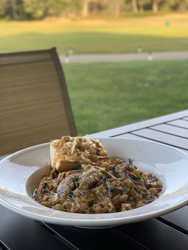 Fine dinning. Higher level of service and food with prices average for the area. Not just processed food. you can taste the difference. Good tea selection. Beautiful inside. Love the golf course too, 9 hole family style. Friendly and fun.