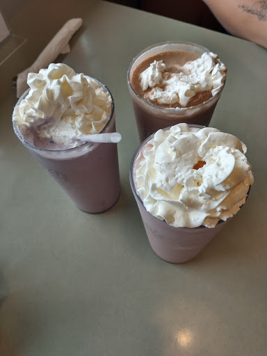 The food wasnt very good. There was nasty brown chunks in my milkshake. I waited about 45 minutes after we got our food to get my milkshake. Wont eat here again..