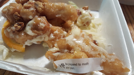 Food was ok. Ordered the honey walnut chicken and it had a mayonnaise sauce drizzled all over it that they couldnt tell us the contents on because it sounds like they get it pre-made. So if youre looking for made-from-scratch you wont get it here. Also got chow mein, which was decent. The hot and sour soup was ok, but the water chestnuts kind of ruined it for me as a texture issue. They did a decent job timing wise. Price wasnt too bad. Those three items were $32. Ive eaten there previously and thought it was decent. I dont recommend the honey walnut chicken.