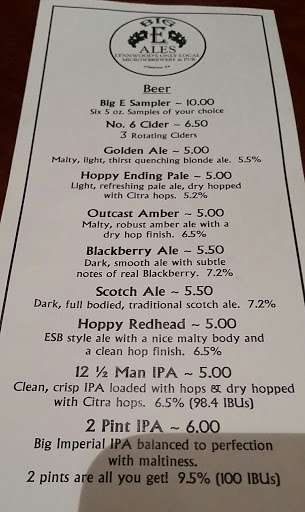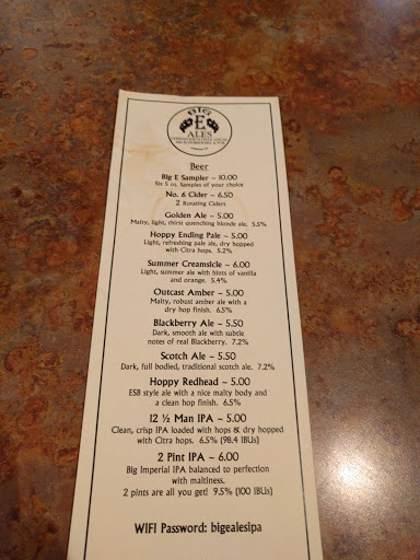 We had an awesome time at Big E Ales! Brian was personable and quick with food and drinks. Steve and Nick were fun to visit with. Kids had root beer shakes which were out of this world!!! Pear cider and Summer Creamsicle were the best!!! Fantastic experience all around!
