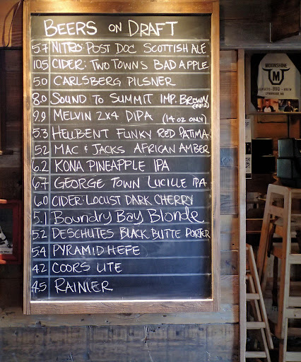 Ever find yourself sitting around, thinking wistfully of hot links? Its an experience I was unfamiliar with until I ate at Moonshine -- and they totally downplay the delicious. Outside, it sort looks like it might be a hipster bar that started out of a food truck, but inside, the signs of good BBQ are around: paper towel rolls on the table, a good selection of sauces, and meat by the pound. Yeah, it smells legit too. Noms nomd: Brisket, ribs, hot links, fries, sweet potato waffle fries, baked beans, collard greens, and, of course, delicious cornbread with honeyed butter. Oh, hush -- there were two of us; I wasnt /that/ hungry. Beans: Delicious, smokey, not too sweet. Ribs: Cooked perfectly and still moist. Picture a dog gnawing a bone. Brisket: More, please. Surprisingly good with the Tangy sauce selection (a honey mustard vinegar concoction? Dont question it, just try it!) Fries: Mmm, cooked perfectly, battered a little perhaps? Collard greens: Good flavor, a little limp, but not mushy. YMMV Hotlink: There seems to be cheese and jalapeno in here -- not sure it was something special or their normal hotlinks, but holy crap, I stay awake dreaming of these. Did not try the moonshine, of which they offer sample flights that seemed pretty popular. Good beer selection too.