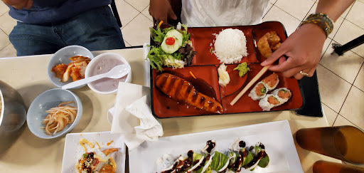 This gem of a sushi restaurant is right in the middle of the H Mart Asian food court. The food is delicious and very reasonably priced and comes out quick. None of the special rolls are over $9, and the teriyaki bento box is only $6.95! Not much of atmosphere, but its a food court, spits what youd expect. We will definitely be back!