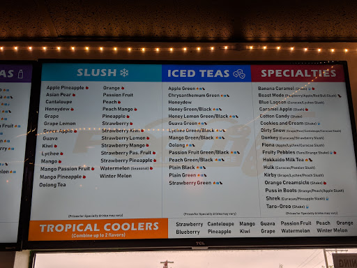 Let me just stay by saying that i have never liked bobba tea. In general, most of these bobba tea places use flavor powders. I especially dont care for the bobba/pochi balls as theyre just corn starch. The fresh smoothie selections are often limited -- if you ever want fresh smoothie, obviously just go to a Jamba juice. That said, this place is no different from other tea places in terms of selection and preparation.. It also has a limited food selection (think fried food as shared snacks). It has the same typical crowds as well -- high school and college Asian kids. When i went (not by choice), on a recent Friday night, it was so crowded that people were hanging out in the parking lot.