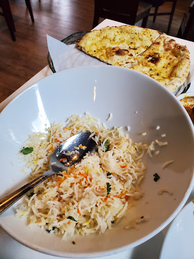 We were dining late on a Saturday and wanted to try this place but waited for after the rush. No one was in there and still were seated at the smallest table so we requested a larger one. Ambiance was nice but had to ask for a candle for the table lamp. Ordered Saag paneer which I could tell was old and way too salty, with like 2 pieces of paneer in it. Chicken Masala was pretty good, although entree dishes were very small portioned. Rice was good, Garlic naan was excellent, also decided to ask about a curry vegetable dish, waitress suggested the Korma vegetable, she said was quite popular- but cant imagine why, since it was just potatoes - I mentioned this to the waitress and she argued that there was cauliflower and carrots also, without any inspection or apologies. It was pretty pricey for Indian food and we felt somewhat ripped off. There are way better deals and service out there.
