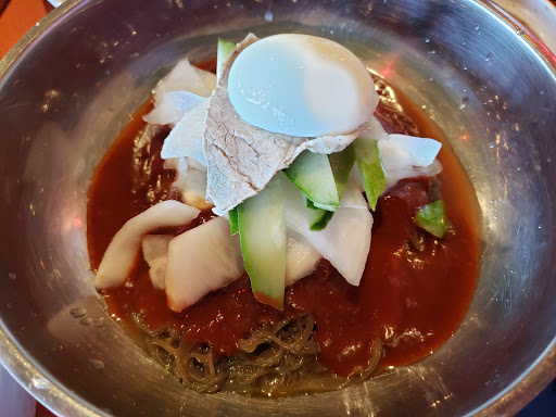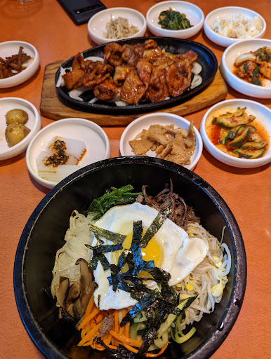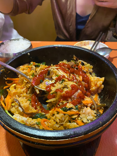 If you want to have authentic Korean food, this is the place. Full of Korean customers and served by Koreans, which indicates great authentic taste. Service is great, especially waitresses chatting with kids, teaching me how to eat bi bim bap (in Toronto it was served differently), and being very friendly. The food was really great, especially the seafood pancake, which was huge and filled with seafood and green onions. My bi bim bap was full of flavour and definitely would get it again. To make the experience even better, they brought watermelon with the bill. Definitely will come back again.