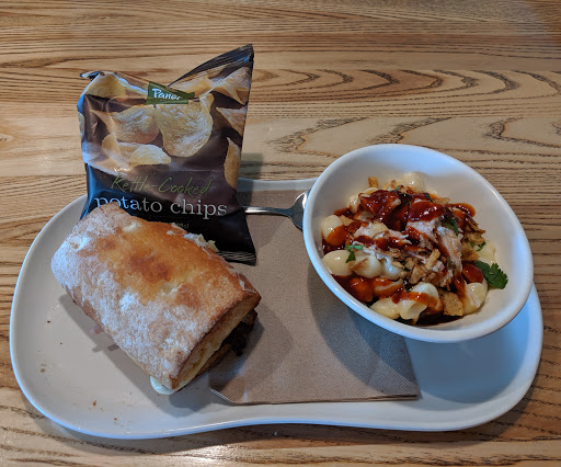 I usually get a sandwhich with chips. Have never been disappointed. Eat inside or out or drive through. Make sure to get your panera card for reward points. Every several visits I will get a free or half off reward.