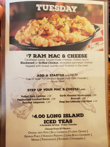 Mediocre at best for my family. Put it this way, I never give reviews for restaurants, but our food was so bad, and service so slow, that I had to. I had the fish and chips...fish fried so long, that it was chewy. Never experienced that before. All the fries were luke warm and chewy, my wifes sandwich was missing the avocado she asked and paid for. The waitress was nice but not competent. Eventhough she knew we were not pleased with our food, she failed to get the floor manager involved or something. Just got the bill for all of the food and even for the food we didnt get. For the price, you can go to Bobs or Red Robbin and leave content. We will never go back to the Ram.