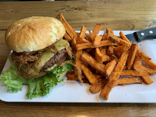 Its a great burger fry joint. Not too sure that the sweet potato fries are worth the extra money as they are usually overcooked and still greasy somehow. The sauce is best on the side as their homemade Bobs sauce is a little like thousand island dressing in my opinion. Overall I think the food is fairly decent and A Step Above Red Robin. But it is often very busy and seating is limited. I also Im not a big fan of the pay First Once a table is available, then sit to get your food. It makes up odd purchase experience I think. The only plus is if youre with a group of people you dont have to do it can I split the check. Because everybody pays up front before they even get their food. Overall every now and then when youre looking for a burger this is a decent joint.