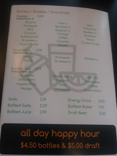 Nice selection of fresh burgers. Bubble tea! Lots of other options too.