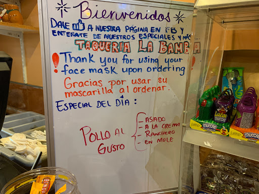 I ate lunch at Taqueria La Bamba yesterday (Sunday) and had tongue tacos with rice, beans and salad for $7.50. The tongue tacos were so tender and delicious with fresh cilantro.! Everything tasted great and everyone was very friendly and nice! The milk drink with cinnamon was the best Ive ever had! La Bamba is close to the Evergreen Fairgrounds where I was attending a horse training event. I would be eating at La Bamba every day if I didnt live in Bellingham !