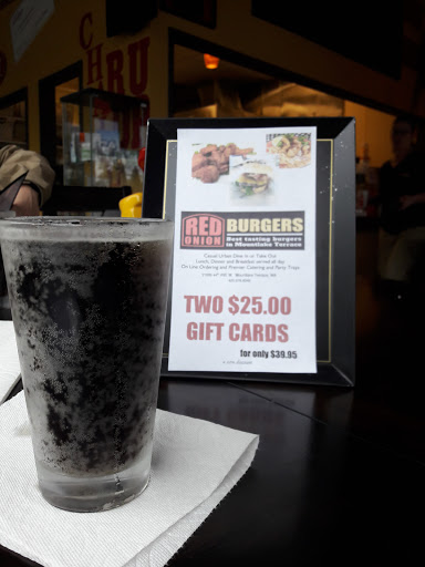Had a pretty good experience the first time we ate at Red Onion. I got the Triple By Pass which was great, I took pictures and told everyone I knew to eat there. The second time we ate there I couldnt tell if the burger was good or not; it was soggy and ice cold..... The story begins with us being invited to Red Onion for a fundraiser; we had to travel north from Kent for about an hour in crazy Seattle traffic but we were insistent that we needed to make it to the fundraiser, so we kept on truckin. We even picked up two friends along the way to help the fundraising cause and to show them an amazing burger. After fighting through two accidents along I-5 north we pulled in at around 7:10pm and checked in, the place is already full but were willing to wait. The closing time is 8:00pm so plenty of time to eat. Wed already waited 15 minutes for a seat which was just fine, but at 7:25pm the waitress manning the hostess podium notifies me that "The kitchen closes to Dine-In at 7:30pm and even though people are leaving, there wont be time for you to look over the menu and order before we stop taking orders." I say "Ok, how about we take a look at the menu now, so as soon as that table there is bussed we can order." She says "There probably wont be time for that. You should just get it to go." I say "Well we just drove an hour to get here for the fundraiser, I really wouldnt want to eat in the car. Could we place an order right now, then you can seat us and serve us with plenty of time." She replies with, "No that wont work because we need to have all the customers gone and the whole restaurant cleaned up and heading home at 8:00pm exactly." So I replied with, "How about we place a to go order and we take a seat when one is clear and well bus our own table. You wont even have to serve us." She replied with "No you cant do that. If you place a to go order you cant sit at a table." Im a VERY calm person, I am very easy going to the point where Im a push over and tend to get walked on. However I just gave her 3 perfectly good solutions and she shot me down for all of them. So I swallowed my pride and we placed a to go order. I sat angrily at a CLEANED table quietly fuming waiting for my name to be called. Our food came out at 7:40!!! 20 minutes prior to the "doors locked" closing time. I told my friends "Screw this. Im eating right here." They said, "No, lets not cause any trouble. Lets just go." So I left with my food. We ended up driving 20 minutes to a nearby friends house and we all ate our cold burgers. All because a waitress wouldnt even let her customer sit down. Screw this place. Im never eating there again. Horrible customer service. Cold food. I even waited a full month to write this review because I wanted to cool down. But I was totally slighted by her. I wish I just gave cash directly to the fundraiser. This company didnt deserve any of my money.
