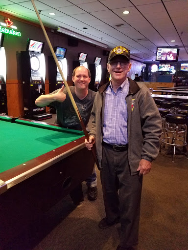 A nice local sports bar, parking is no problem.Volume great! Food is good