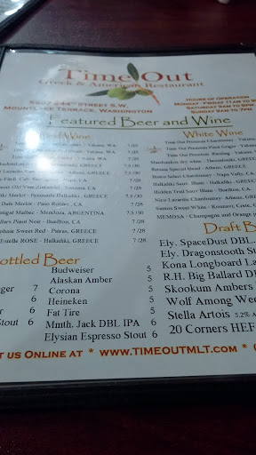 Time Out is a family owned and run local business (a big plus in the Seattle area). Their food is consistently prepared well and tastes delicious. The casual and homey atmosphere makes for a relaxing and enjoyable experience. For any chicken tenders fans (odd to include this in a review of a Greek place), their in house breading is the best Ive had. Mixed with their BBQ sauce (if youre a fan of that), youre asking for a delicious and simple meal.