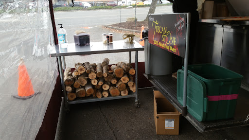 Location: the location was in the gas station parking lot, on the corner. It is a semi decent location. I say it is a semi-decent location because the parking is not the greatest considering it is for the gas station. It would be nice to be able to sit there at some tables and enjoy the food, but it is understandable because of the location. Cleanliness: the surrounding area to the food truck was clean. The inside was also clean and tidy. The only thing I saw that would have needed cleaning was the lid where the sauce was at the prep table. As a cook and a clean freak in the kitchen, I noticed it easy. Other than that, it was spotless which was very nice to see. View: there is no beautiful view of the ocean or skyline. But, it is pretty unique how they did the stone stove on a food truck. Taste: The Taste was very surprisingly good considering it is very difficult for many places to make a very good thin crust pizza . I decided to try out the Chicken Pesto Pizza. The Pizza had Italian Chicken, Pesto Sauce, Marinated Artichoke Hearts , Roasted Red Peppers, Applewood Bacon, Red Onion and Fresh Mozzarella. There was a perfect amount of Pesto sauce, Italian chicken and spice to the pizza. It was very, very delicious and had the right amount of flavor to it. The little Roasted red peppers added a little bit of spice and zing to the pizza which complimented the saltiness of pesto, and the fat from the Applewood bacon! Service: when I first arrived, I wasnt sure if it was open or closed because it was my first time. But, the cashier welcomed me in and was very friendly and offered me a menu. He was very friendly and explain to me what it is they make their and how they make it. He explained to me with great detail and always a friendly smile. Love the customer service there!! Overall: I feel that they were a great place to get a pizza from whether you take it home or on the road. They were very clean and very friendly. It was very inviting, comfortable and awesome to see how the pizza is made while you are waiting for those few minutes. The pizzas are made in about 5 minutes which is awesome! I will definitely be going back to try more pizzas and see if they keep up the good work and if the quality is still consistent. But from my experience there so far; I highly recommend going to Tuscan Stone Pizza for a delicious pizza.