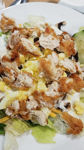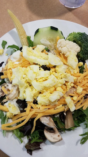 The wait staff was friendly but the food was nothing to write home about. Nothing was wrong with it comma but it seemed almost manufactured , Vice homemade. There was ample parking and the location was convenient. The salad bar was clean and their produce looked very fresh.