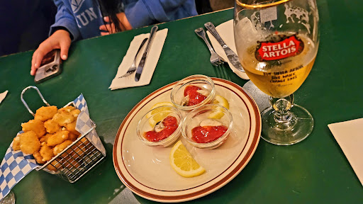 The food was good, I had the mac and cheese and a cup of the potatoe soup. The soup was a bit too creamy for my personal likes and salty but easily fixed with some pepper. My friends all enjoyed their dishes (the beef stew, the clams, the soda bread and fish sandwich, as well as the fish and chips), a little on the okay side not something to brag about. Our waitress was not attentive or customer service geared. She was on the younger side, snappy and never smiled. She seemed annoyed with us and hardly checked in, didnt answer our questions in a polite way or anything. She really made the experience less tasteful. Its a small town and youd think the wait staff would treat people better for better tips. Im from a remote tourist town in Alaska so I know about the seasonal work and the tourist but you should always be considerate and customer focused. The bar staff were way more easy going and polite and were friendly. If theres a next time Id definitely eat and drink in the bar section instead of the dining area.