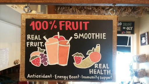 Not only do they make the best triple shot mocha they make a great smoothie called the PB&J. Its a smoothie, when you add a super green shot, thats like a healthy meal complete with protein, vegetables, fruit and fiber.