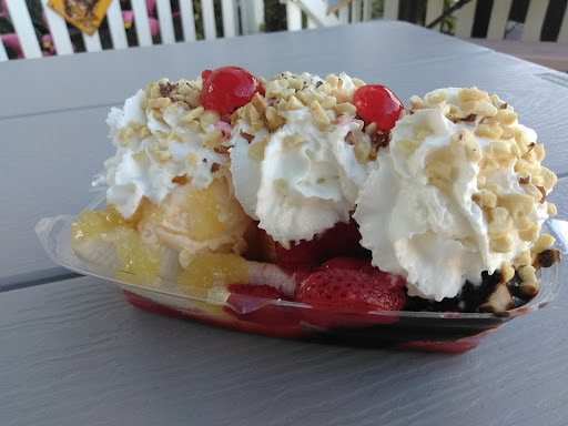 Good solid burgers, dogs, fries, onion rings, and shakes. Salty and fresh. Service is fast and friendly. They feature "goop sauce" on their burgers and as a dipping sauce. "Goop" appears to be a blend of mayo, mustard and relish. Many flavors of shakes can be had. Huge soft serve ice cream cones for 99 cents are sold just across the parking lot at their own ice cream stand. Pricing is reasonable and cute. For example, $2.62 for a large fry or $1.31 for a medium drink. Not sure what thats all about but it shouldnt stop you from checking this place out.
