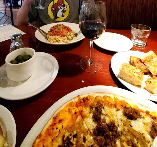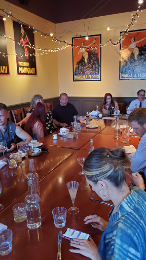 Best service in town. Wonderful for large groups and celebrations with private rooms. Ive been to multiple events with one server flawlessly handling a large group, even remembering details like my name, giving me the perfect wine recommendation based on vague descriptions of what I wanted, patiently and gracefully navigating through a crowd among 30 conversations with perfect timing to offer and serve drinks and food. I would go here often if they had better vegan items. Part of the excellent service is that they find you something. I had a pizza, for example, that wasnt too far off from what Id have in Italy. The server had the chef make me one with no cheese and his or her choice of veggies (not on the menu). It was very good, but I want to see interesting vegan items on the menu so I know me and dining partners can have multiple dishes to rely on. The group catering menu is insufficient. It does not offer something for everyone. Try planning a sophisticated baby shower. There was too much fish, which the pregnant lady either didnt like or couldnt eat (not recommended during pregnancy), too many cured meats and soft cheeses (also not recommended). Nothing gluten free. And too rigid to accommodate these issues. The bruschetta and tapenade seems like the most flexible item on that menu. I had to explain these limitations to the celebrated future mom, suggesting she may have to order her own, separate plate. She had already picked the place and invited everyone.