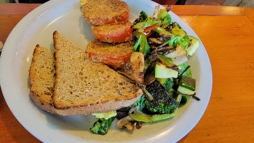 Good food, efficient but not always polite service, dirty facility. I was very skeptical when we arrived and a server simply nodded in the direction of an empty table, and then proceeded to ignore us for five minutes. I also needed to use the restroom, and it appeared at first that there was no restroom for customers. However, once they decided to serve us, the service was good, though not terribly friendly. The food was excellent, and the reason for the abrupt service quickly became apparent; this is a popular, yet understaffed restaurant. The small size would make adding staff difficult, as the two servers barely had room to get around between the tables. There is a bathroom in the back, but you literally have to walk through the kitchen, where at least you can observe that they do appear to follow good food safety procedures, although it is a rather disorganized and cluttered kitchen. Although creative, nothing on the menu jumped out at me, and a lot of it simply sounded weird rather than interesting. Fortunately, they had a build-your-own omelet option, and it was delicious. This place embodies everything I dont like about Olympia, right down to the homeless people out front who turn out not to be homeless at all, but rather just waiting for the next available table, and the obligatory "Black Lives Matter" sign in the window (as if anyone who would go to a place like this would disagree). Bottom line: I will come back and probably enjoy it more the second time now that my expectations have been appropriately lowered.