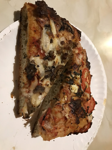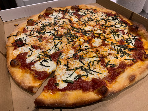 No AC. Not very clean. Staff is not friendly. Customer service was poor to ok. Also seemed under staffed. About an hour wait if you wanted to order a pizza instead of just buying already made by the slice. I didnt like being there. I walked in and saw two staff members but neither of them looked up at me to help. Two other parties came in and no one was greeted at the front to order or told to be seated wherever they liked. Trash was left on the seats and the tables. Now I liked the pizza. I give the pizza 4 stars. Fabulouse huge slices! The crust was good. Thin and had a good taste and good texture. The sauce worked great with the crust and cheese. Added a freshness and juiciness. Good flavor. The cheese was the perfect thickness and stretchiness. This is a greasy pizza. I like grease. The pizza was way too salty. Way too many herbs and salt on top. It seemed like whoever made it was afraid it wouldnt be savory enough so they loaded it down with salt. It wasnt enjoyable. I had to take it home and put unsalted ricotta on it to even it out.