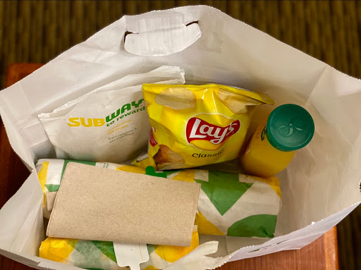 A subway is a subway, this one doesnt seem to be well run. Stale bread and only one person working during dinner? It shouldnt take half an hour to get a sandwich. Now, Ill give the kid working credit, hes focused and just calmly taking care of each order as fast as he can.