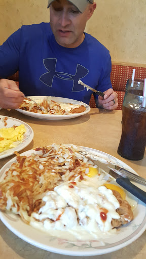 Its a decent looking restaurant; however, the staff seemed completely incompetent. We asked to be seated with a high chair, we were seated at a booth and given a booster chair, we ordered drinks but she didnt bring enough straws, we ordered food and were served burnt pancakes and they forgot my chicken fried steak. When I did get it, it was covered in this lumpy, gelatinous "gravy" mixture that tasted terrible. This place needs work.