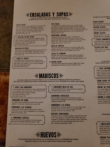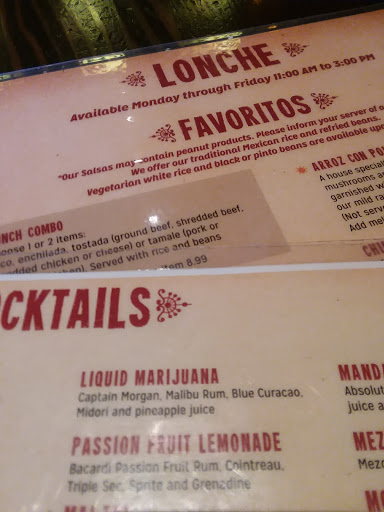 Nice atmosphere, generally good food, generous portions. The only downside so far, my mother ordered the New York Steak, medium rare. It came very rare, and had a lot of fat, gristle and other inedible bits on it, plus, her first steak knife was so dull it couldnt cut butter. Other than that, dads Carne asada salad was excellent, as was my vallarta burrito, and the drinks were quite good. In general, stick with the Mexican dishes, and you should not find anything to complain about.