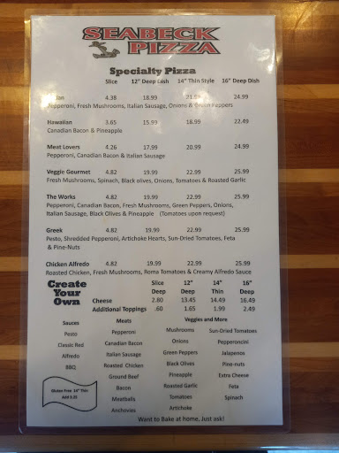Ordered the Works pizza to take and Bake. Papa Murphys started tasting weird, Im thinking they changed recipes, so we needed a new Pizza place and We FOUND IT. Seabecks pizza was impressive to say the least. We loved the quality of the ingredients and the crust was spectacular. A bit on the thicker side, but it held up nicely against all the toppings. We will be enjoying Seabeck Pizza from now on!!