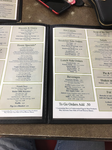 Huge portions for fair price. Small, very casual place. Similar to a truck stop.