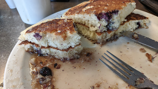 I just went to The Junction Diner this morning for breakfast. Darryl & Jody of Birds Eye View B&B recommended it, and they were right. My father-in-law & aunt & I all loved it. Heres why: 1. Portions are huge. The pancakes in particular were so big they nearly eclipsed the plate they were served on. Any bigger and the syrup would run right off onto the table. For a child, Id dig a crater in the center to keep the syrup contained. My ONE sausage patty would have intimidated the largest burger patty, guaranteed. (and I had thought they were skimping when I asked for a small side order of sausage and the waitress clarified "okay, thats ONE sausage on the side: link or patty?") 2. Prices are small. Sure, we spent $32 for the three of us, but we took away a third of that food in a to-go box! If wed had the breakfast special (a HALF-order of any "classic" Diner breakfast) for $4.95 instead of a Denver omelet, a side of sausage, and two full-size Classics, wed all have been stuffed for maybe $23 including a good tip. Even cheaper if you just drink tap water-- and up here, the tap water tastes great. 3. Service is good, and pretty fast. It is also informal. This is a DINER. It is not a slick fast-food microfactory like Chipotle or McDonalds, nor a cafeteria-style place where the food was made hours ago and just kept warm all day till you eat it. Nor is this an upscale restaurant with well-mannered and formally trained service staff. Its a young local girl who is quick at the register and knows the menu well. She can get overwhelmed when a bunch of people walk in at once (which happened soon after we arrived), but sit down & relax, you wont have to wait long. 4. "Ambiance" is American-Diner Casual. The place is clean and shipshape but doesnt seem to have any intentional "decor" like some diners do: no 50s kitsch, no country ducks, no trucker paraphernalia or logging-camp or miner schwag. Its too small to fit a lot of decor anyway: there are only 3 tables and a lot of bar stools at the L-shaped bar. But the waitress was cheerful and the other patrons were friendly with each other and with us. It seems to be a favorite local nosh spot. If I lived anywhere nearby, it would be one of my favorite places for breakfast (they serve lunch too but not dinner), but not to just hang out-- Id feel I was hogging a table or a barstool, and I dont think they have free wifi. (Someone correct me if Im wrong.) On the other hand, it really is a comfy place to sit and linger over breakfast, read the morning paper (youll find one left behind at the bar), and chat. You could order, eat & leave in less than 30 minutes (if you order something small), but why hurry? The small-town diner vibe will refresh you if you let it.