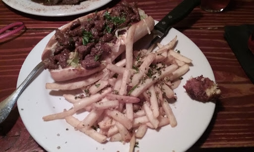 We are travelling and asked Yelp for recommendations. This place was the best choice in the area. Food was tasty with nice flavor combinations but service was weird. For example, we asked for some bread while we were waiting for our meal and apparently the order had to be put into the kitchen, which resulted in our bread coming out with our meal, which kind of defeated the point of having bread while waiting. I had one of their specials which was a Cajun ribeye. Nice flavor but the quality of the meat itself was not as high as I expected. The menu did say choice, not prime, so I should have expected as much. Ambiance was decent, maybe a bit loud but that was probably just the group of women at the next table. Overall an experience worth trying again. If the service could be improved a bit they would have a hit.
