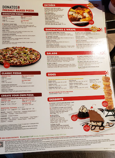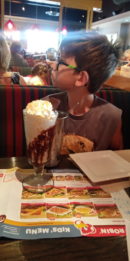 "Bottomless" is their motto! With bottomless fries, sodas, lemonades/limeades, rootbeer floats (including bottomless ice cream), and HUGE portions for entrees~I Love Red Robin!! With my family of 5 it can be expensive to dine out, but with Red Robin we get great food with unbeatable friendly service. Although a busy hot spot, the atmosphere is fun and lively. Also was impressed that all their burgers can be made with 2 different vegetarian patty options...Excellent food...Yummm!!! Also very family oriented on Tuesdays and Saturdays Red Robin the mascot comes out to stop by the tables for hi fives and photo ops:-)