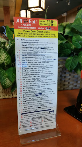 Freshness: 3 stars Presentation: 1 star Value: 3 stars Hot House Sake: ? stars I was very excited to see an all-u-can-eat sushi lunch for the same price as a low-quality chinese buffet. After I put four rolls away, Sushi World ended up being a big disappointment for me. It was like the sushi chef thought I was a champion competitive eater, and he had to serve me gigantic rolls with a crazy amount of rice and pieces of fish that were sliced transparently thin. Even though the buffet was 12$, I might have eaten 2$ worth of food. I wasnt going to march in their and eat 30 rolls of the most expensive fish (at a real sushi lunch buffet, Sushi Town in Bonney Lake for 18$, the current record is 12 Mountains). Let me break down my Sushi World Washington roll for you: Raw Salmon: 2% Seaweed: 2% Avocado: 5% Cucumber: 25% Red Apple: 25% Rice: 41% I couldnt taste the raw salmon or avocado at all. Plus, you should use green apple like the pros at Tokyos! I understand if you dont serve nigiri to the 12$ crowd (you have to pay 18$ for nigiri and the deep fried rolls, which are actually tastier), but give me a break. Warning: this place does NOT have yellowtail. Jeez! I wont go back here. Happy sushi-ing
