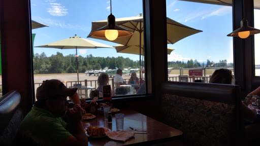 First time coming here, great atmosphere...really reminded me of an old style diner, and right next to the airfield too. The chicken fried steak was great and hash browns were good too but the eggs were undercooked. Not a big deal, but it could have been better. Would have given 5 stars until I saw the bill. $13.99 for the meal wasnt too bad, but $3.50 for coffee is a little over the top. Bottom line, Ill probably be back.