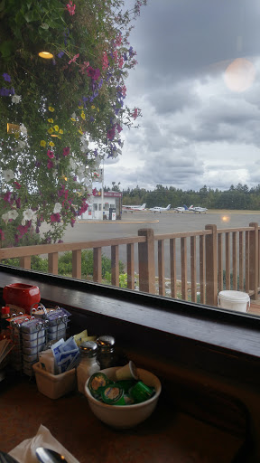 Horrible service. Went here today with a friend of mine and her son to eat lunch and watch the airplanes. We came in the door and stood there for awhile before anyone even acknowledged us. The hostess came up and said, "Just four?" then seated us. Drinks were bought out and our order taken in a timely fashion, but when I ordered a cup of coffee, it took about 5-10 minutes to get it. The waitress never came back to ask if our food was ok, if we needed anything else, or if I wanted a refill. The food was very overpriced ($4.99 for a side of bacon??) although my friend and her son said it tasted pretty good. We all agreed to never come back.