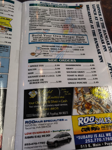 We host monthly meetings at the Hangar Inn Restaurant. The owner and staff are wonderful people who provide EXCELLENT service. They provide us with Buffet Dinners and the food is always EXCELLENT too. It was like eating grandmas home cooking. We cant say enough about how great our experience has been at this restaurant. Dr Matthew A Johnson