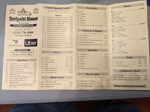 We usually get our Teriyaki from Happy Teriyaki, where the portions arent as large but the quality is always outstanding and the staff is wonderful and polite. BUT they arent open on Sunday. We tried Wok once and were very impressed by the large portions, and the taste/quality was comparable to HT. But this last Sunday will be the last time we will ever, ever go into this eatery again. They close at 9 pm, no time to call ahead so we rushed down there at 8:30. The lady behind the counter looked pissed because we were there. She rushed us to get our order, and when she turned it in to the cook she yelled "SORRY" to him, obviously because we had the audacity to come in and order 40.00 worth of food, to go, 30 minutes before they close. There was one other couple waiting for food, and the counter lady actually told them that "next time try better planning and come in earlier". The people in the kitchen were all yelling in whatever language they speak, and one of the cooks came out to the dining area and sat down and was GLARING at the people waiting to get their food. When we got our food, I paid and the counter lady ripped the money out of my hand, handed me the bag without a thank. you. When we got into our truck, she was locking up and closing blinds...it was 9 oclock on the dot. So they all got off work and were able to close on time, even with pesky customers who wanted FOOD coming in and bothering them. THE FOOD: Teriyaki chicken was awesome, as were the egg rolls. Kobi Beef Ribs (most expensive item) were sub-par, almost all gristle and very hard to chew. Wonton looked like deep fried tortellini and was so old and so super crispy I had to throw it all in the garbage. Bottom line: I worked for 10 years in a restaurant. We closed at 10 pm. If a customer came in and ordered at 9:55 we had to serve them, courteously, even if it meant staying until 11 when they were finished eating. We never showed frustration to the customer, and most DEFINITELY never mentioned that they were making us stay past closing time. The way we were treated by the staff at WOK is unacceptable, and the food did NOT make up for their nasty, bad attitude. Never going there again. We will just plan to order Teriyaki on Monday through Saturday at Happy Teriyaki, where we can get BOTH excellent service and food! :) The Wok gets 1 star for the good chicken.