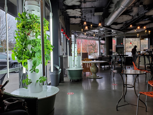 Cool, upcycled furnishings with lots of natural light and friendly staff. Great place for a mid-day date or to get some work done.