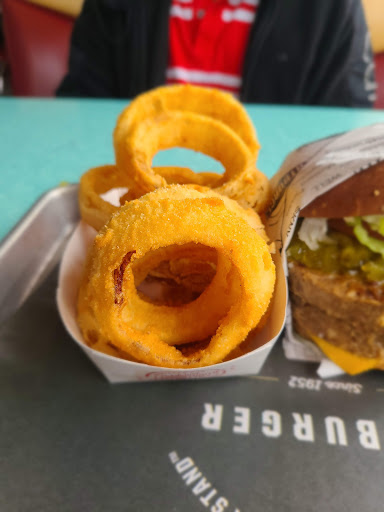 Good burgers and great shakes, fries and onion rings are not up to par and the prices are too high for a fast food place.