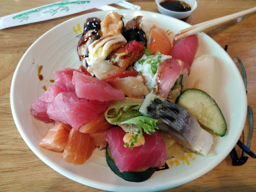 I went here for lunch with a co-worker. Lunch costs about $16 not including tip. I like sushi, and was pretty hungry at the time, so I figured I would at least get my moneys worth. But my co-worker doesnt like sushi, so he was limited to hot dishes. Now I have to say, I was disappointed by just about every food item I tasted. All of the food items were either bland, or had a strange, off-putting flavor. I tried their chicken, duck, and beef "special". Also, the sushi is not the highest quality, and you can tell that they chill large pre-made amounts in fridges for a few hours before lunch. Bottom line, acceptable, only b/c of being able to save money on sushi. The restaurant looks nice and is clean though, but I wouldnt recommend going here, unless you are really hungry, dont mind mediocrity, and you can eat a big amount of sushi in one sitting.