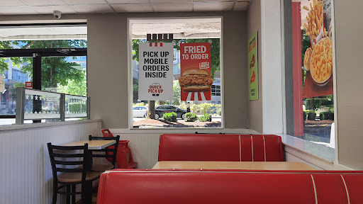 Fairly typical KFC. Always quick whenever Ive gone there, and friendly staff. Theyve never messed up my order, which is also a plus. The parking area is fairly awkward due to the triangle shaped lot, and large vehicles may not fit through their drive-through which squeezes around a tight corner at the back of the building.