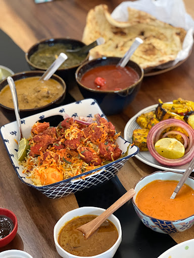 Classy Indian restaurant with excellent food. Wifey and I chose two decidedly British choices (Chicken Tikka and Rogan Josh) and both came out deliciously moist with a good level of spice. The chicken tikka came out on a sizzling plate with grilled onions and peppers which caught me a bit by surprise (had a Mexican sizzling fajitas plate feel) but was still fantastic. The Rogan Josh was enjoyed over steaming rice and polished off with fragrant garlic naan. We were seated by the bar (cozy "for two" booths) and the nearby bartender stayed busy making mixed drinks throughout the duration of our visit so I assume the mixed drinks are also fairly good. We will be returning in the future to try some of their other dishes and perhaps some drinks. Pros: + Juicy chicken dishes + Spice levels are good; not at all underwhelming unlike restaurants in outlying areas. So-sos: = Parking is a little tight but additional spaces can be accessed on the other side of the complex (enter on 166th or Cleveland) = Lighting is a bit dim (perhaps "atmospheric"?) Cons: - The order-to-food-arrival wait can be long (40 min on a busy Friday night) but one could say the wait is worth it. Mototip: If youre not one to leave your lid on your ride give the "for two" booths by the bar a pass. Also, it might go without saying but theres no dedicated moto parking.