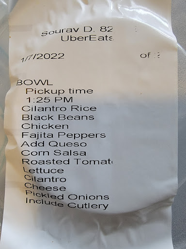 They are out of everything No rice, No fajitas, No sour cream,No chips never coming back ..I prefer chipotle next time...
