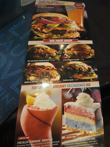 The atmosphere of this Red Robins is terrible. No large booths and the door greeter was lost in space. The only saving grace was my server. But he was slow with checking on us and finalizing payment. The food was average. What ever happened to the large basket of fries? Overall this location felt like I was at a fast food place instead of a restaurant.
