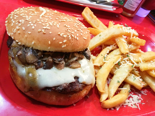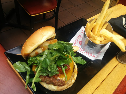 The burgers are great. The bottomless fries are greater. This is a great place to take kids; theyll love the atmosphere. The staff is also very friendly! If you order a lot, including shakes, it might seem kind of pricey, but worth it. We love having birthday celebrations here, too. There is also a sports bar if anyone is interested!