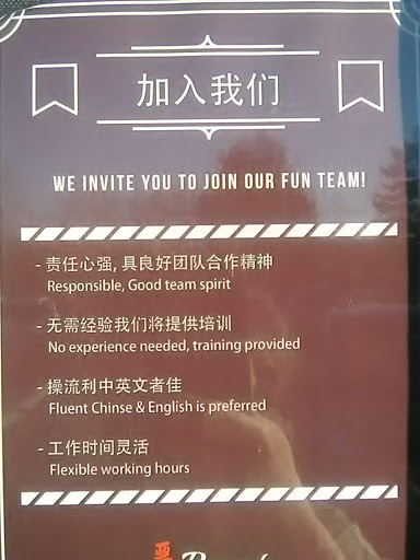 Hum... a Chinese restaurant... or maybe Café? Or is it a Bakery? Im not really sure what this is, but its something... Whatever it is, its not bad. Im not going to give this place a ton of stars, because 1. I havent tried the bakery side, and 2. The food was only ho-hum. I mean, dont get me wrong, I love a great Chinese dish, and yes, Im the type to consider Din Tai Fung, overrated, so maybe that tells you I have a higher expectation for food that I cook on a regular basis at home. Why was I here then? This was a Quick dinner with a sweetheart, then back to work. So I see a ton of review of the bakery, and the food, I just got a bowl of their house fried rice, which was tasty, but nothing special. My buddy got a bowl of Pork Soup, which admittedly I was eyeing the entire time I was there. So here is a plate of food, which tastes fine, nothing special. I keep thinking when I go to a Chinese restaurant, that there will be something that takes my breath away, but then again, all I got was friend rice. The service was fine, though, it could have been better Sorry, I want to rate this restaurant, and maybe when I go for the bakery, things may change, but for the moment... its meh.