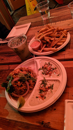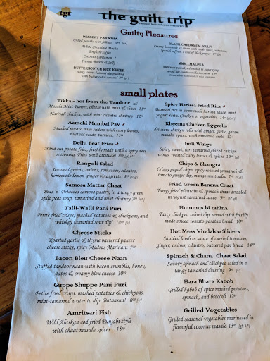 This place has only been open one week, and it has that vibe. Things arent 100% fleshed out yet. We came in at an odd hour, 3 or 4 pm. Our server was super nice, she even let my daughter watch her make a mango lassi, since we were the only ones there. We sat in the outdoorish area (its enclosed) and it was really pleasant, although right next door to a construction site. The food is the real stand out, though. Very fresh, great flavors. We went with a veggie filled naan and a potato and peanut "dipping sauce" that came with a lassi and a salad (around $11). We dipped a little, but mostly ate these things separately to not drown out the flavor of the super yummy veggie naan. The salad is large cut pieces of vegetables, which I love in a salad, but served on a flat plate with other things, so a little hard to eat, especially if youre feeding a toddler with one hand and holding a baby on your lap (why I dont recommend, but this isnt a review of having children close together). The Guilt Trip is where High Score Burger was. High Score Burger was also delicious, but we only went there once for some reason and now its closed. Lets try to support this yummy neighborhood restaurant to keep it open long enough that I can eat there at least a few more times. ***They have high chairs and a changing table in the bathroom.***